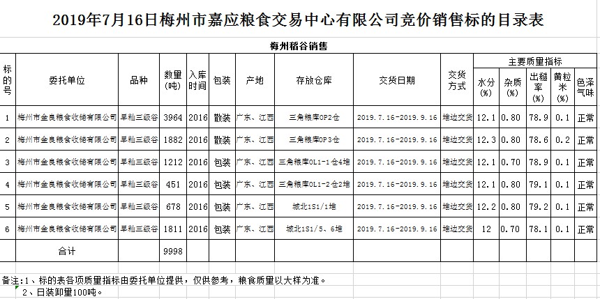 交易時(shí)間和地點(diǎn):2019年7月16日(星期二)上午10時(shí)20分。廣東省梅州市彬芳大道南161號(hào)梅州市糧食交易中心3樓。