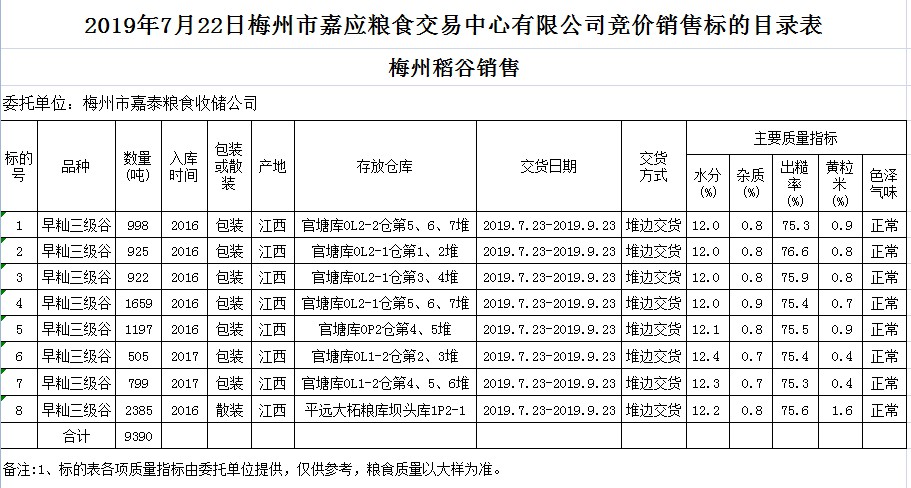 受客戶委托,梅州市嘉應(yīng)糧食交易中心有限公司定于2019年7月22日(星期一)舉辦糧食競價交易會,梅州市嘉泰糧食收儲公司擬銷售2016年、2017年早秈稻9390噸。