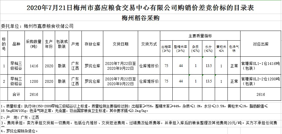 2020年7月21日梅州市嘉泰糧食收儲公司稻谷購銷價差聯(lián)動標(biāo)的交易會
