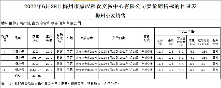 2022年6月28日梅州市嘉泰糧食和物資儲備有限公司小麥銷售
