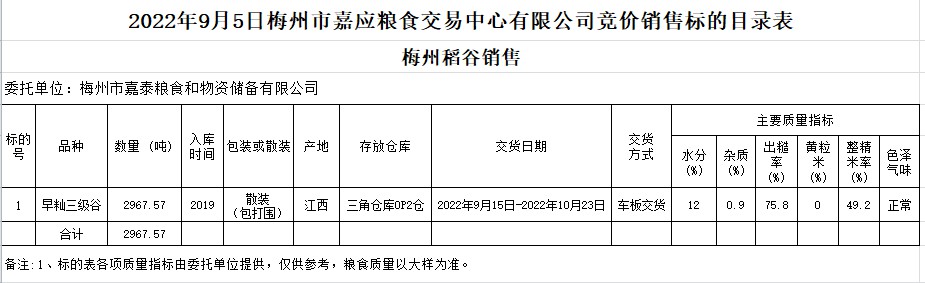 2022年9月5日梅州市嘉泰糧食和物資儲(chǔ)備有限公司稻谷銷售