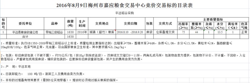 受客戶委托,梅州市嘉應(yīng)糧食交易中心有限公司定于2016年8月9日舉辦糧食競價交易會,平遠(yuǎn)縣糧食收儲公司擬采購2016年產(chǎn)早秈三級稻谷1630噸。