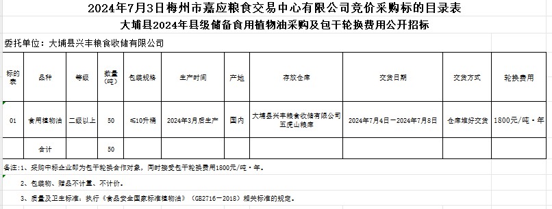 大埔縣2024年縣級儲備食用植物油采購及包干輪換費用公開招標公告