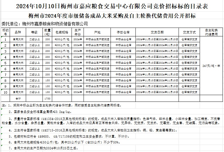 梅州市2024年度市級(jí)儲(chǔ)備成品大米采購(gòu)及自主輪換代儲(chǔ)費(fèi)用公開(kāi)招標(biāo)公告