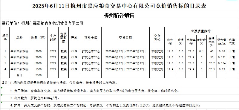 2025年6月11日梅州市嘉泰糧食和物資儲(chǔ)備有限公司稻谷銷(xiāo)售