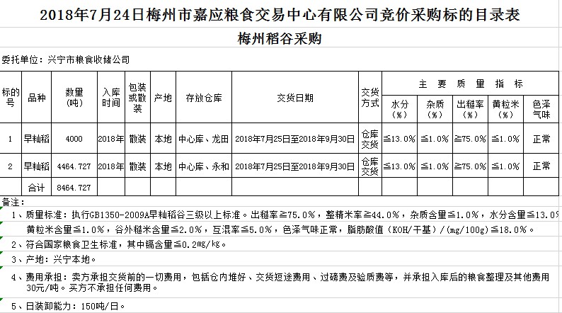 交易時(shí)間和地點(diǎn):2018年7月24日(星期二)上午10時(shí)。廣東省梅州市彬芳大道南161號(hào)梅州市糧食交易中心3樓。
